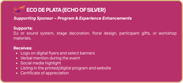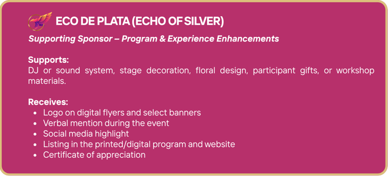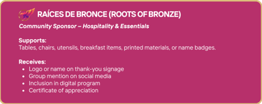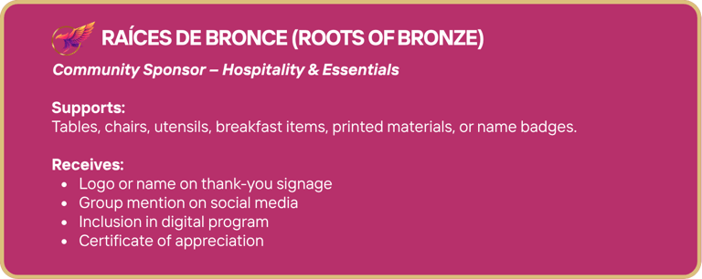 Grita Tu Identidad is a conference dedicated to healing, empowerment, and community connection. We invite local businesses, organizations, and partners to join us in bringing this transformative event to life through in-kind or logistical support rather than monetary contributions.